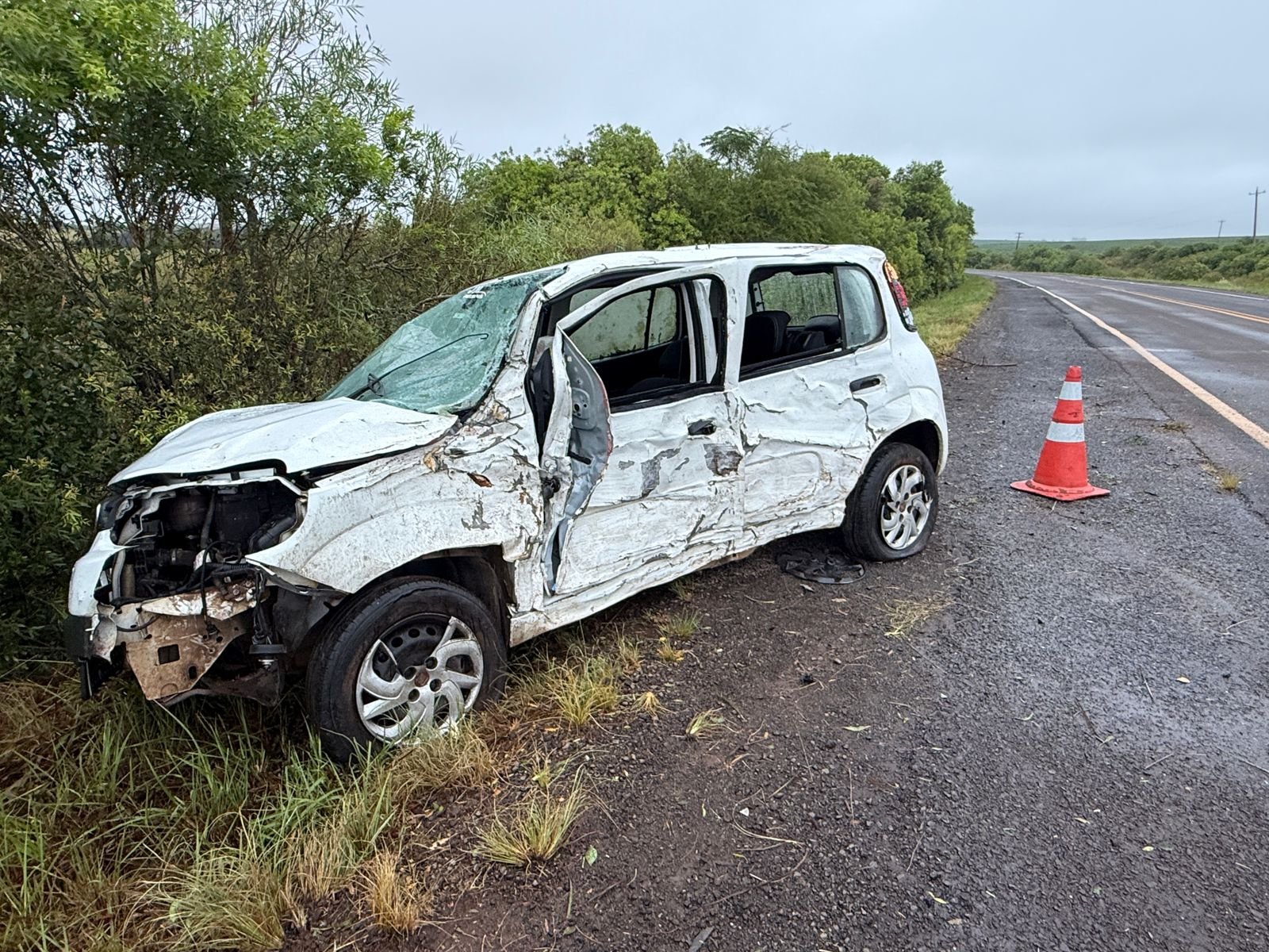 Um Fiat Uno com placas de Venâncio Aires ficou completamente destruído após sair da pista e capotar na BR-287, entre São Borja e Santiago. O acidente ocorreu po...
