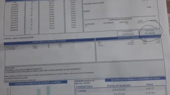 Um morador do bairro Santa Rita, em Cruz Alta, registrou uma ocorrência na Polícia Civil após receber uma conta de água no valor de R$ 22.788,42, referente ao m...