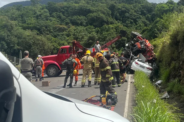 Acidente entre viatura dos Bombeiros e carro na Rota do Sol deixa cinco mortos