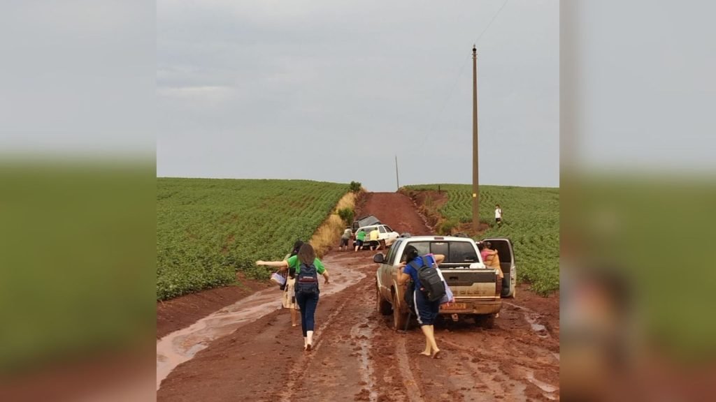 Moradores do interior de São Borja voltaram a reclamar das condições das estradas na localidade do Rincão São João. Imagens recebidas pela reportagem do site SB News mostram veículos atolados no barro, carros em situação de risco próximos ao barranco e até o transporte escolar enfrentando dificuldades para seguir viagem após a chuva.