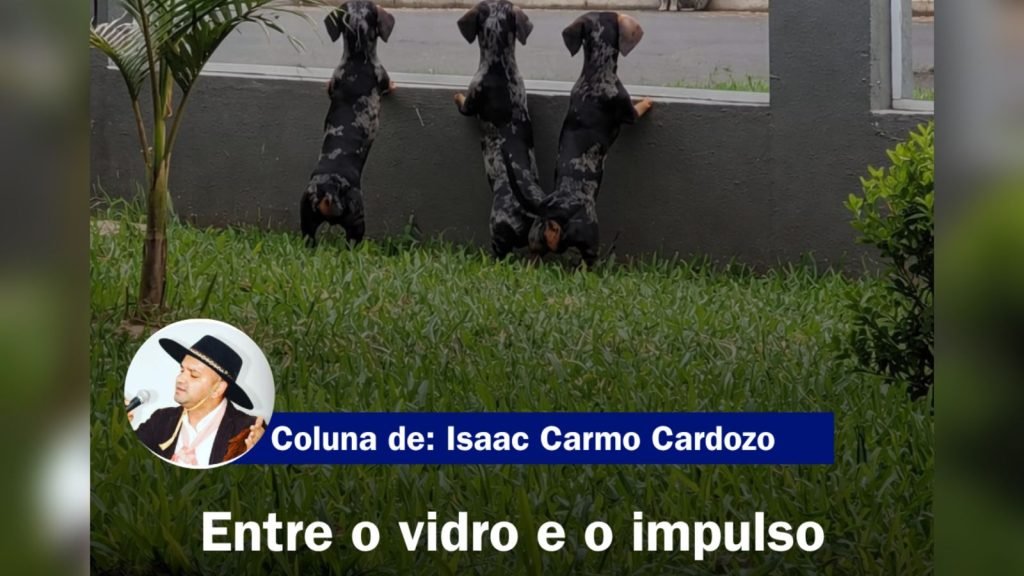 E, como sabe que há um vidro separando mundos, ele provoca. Caminha devagar, observa os cachorros e parece até desafiar. Do lado de cá, os cães enlouquecem em latidos; do lado de lá, o gato repousa, seguro de si, consciente da barreira que o protege.