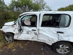 Um Fiat Uno com placas de Venâncio Aires ficou completamente destruído após sair da pista e capotar na BR-287, entre São Borja e Santiago. O acidente ocorreu por volta das 23h de quinta-feira, dia 19.