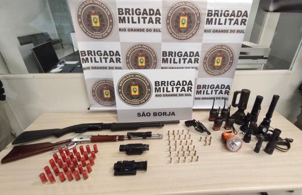 Uma ação da Força Tática da Brigada Militar resultou na prisão de cinco homens e na apreensão de armas de fogo e equipamentos de vigilância na noite desta quarta-feira (15), no Rincão do Maragata, no interior de São Borja. O flagrante ocorreu por volta das 23h, durante patrulhamento de rotina realizado pela guarnição da corporação.