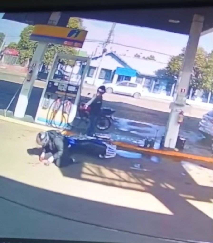 Durante o ataque, um dos disparos ainda atingiu a porta de um carro estacionado no pátio do posto. Por pouco, o tiro não acertou uma senhora que estava dentro do veículo.