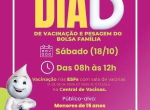 Neste sábado (18/10), das 8h às 12h, leve seus filhos menores de 15 anos para atualizar a caderneta de vacinação nas ESFs com sala de vacinas e também na Centra...