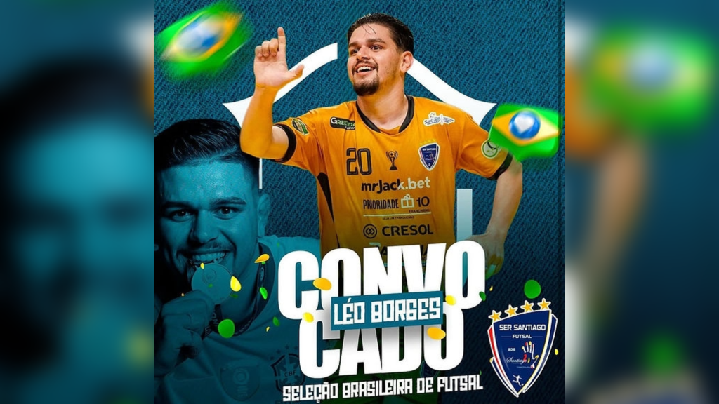 Leonardo Borges, o Léo Borges, ala canhoto da SER Santiago Futsal, foi oficialmente convocado para a Seleção Brasileira de Futsal.