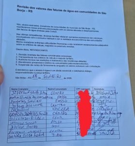 Moradores de diferentes comunidades de São Borja começaram a recolher assinaturas em um abaixo-assinado que pede a revisão dos valores das faturas de água emitidas pela Corsan. O documento, datado de 18 de fevereiro de 2026, aponta preocupação com cobranças consideradas elevadas e desproporcionais em relação ao consumo habitual das famílias.