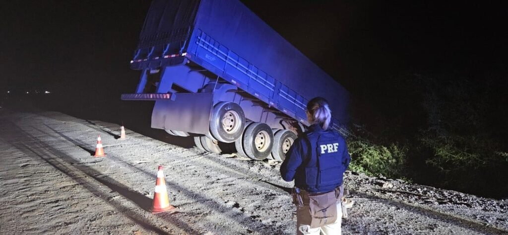 A Polícia Rodoviária Federal (PRF) atendeu, por volta da 1h desta terça-feira (24), um acidente do tipo saída de pista no Km 312 da BR-287, em São Pedro do Sul. O sinistro envolveu uma carreta com placas de São Borja, que transitava no sentido Santa Maria – São Vicente do Sul.