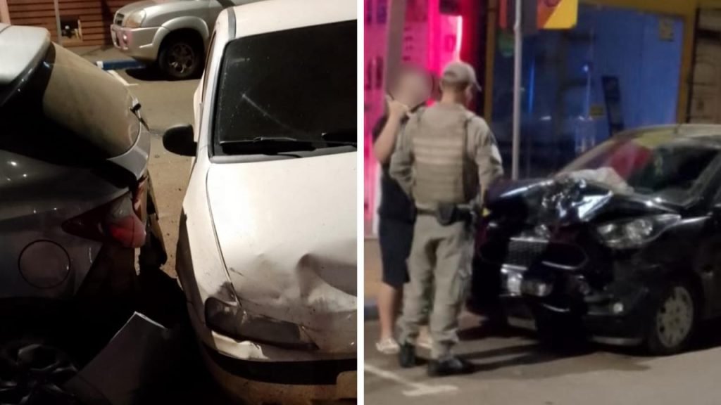 Um motorista de 35 anos foi preso em flagrante após colidir em três veículos estacionados na madrugada deste sábado (1º), em São Borja. O acidente ocorreu na rua General Marques, quando o condutor de um Ford Ka perdeu o controle do veículo e atingiu um HB20, um Celta e um Fiat Argo que estavam parados ao longo da via.