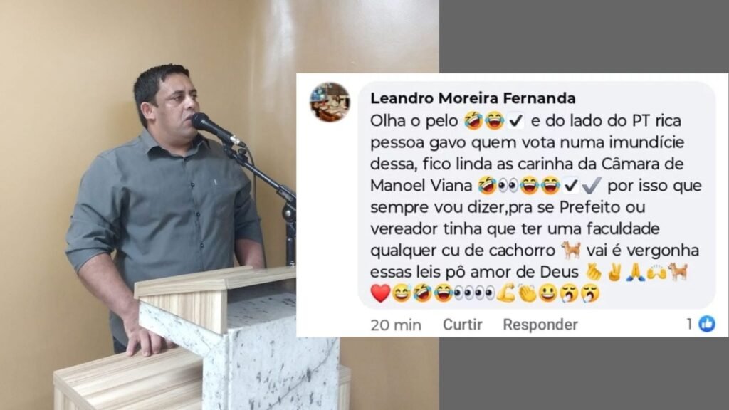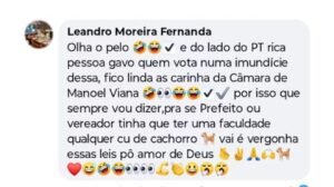 No conteúdo da postagem, o autor utiliza termos depreciativos e emojis para reforçar a ofensa, afirmando que “uma imundície dessa” não deveria ocupar cargos públicos. A declaração gerou revolta nas redes sociais, com usuários se solidarizando com o vereador e pedindo punição ao responsável.
