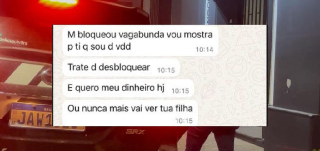 Nos prints tornados públicos, aparecem frases como “quero meu dinheiro hj”, “até às 11 eu quero meu dinheiro” e “paga pra ver”. Em outro trecho, a suspeita escreve: “vou colocar fogo na tua casa”, “vou matar teu marido” e “vou sequestrar tua filha”. As mensagens também indicam monitoramento da rotina da família e tentativas claras de intimidar as vítimas para forçar o pagamento.